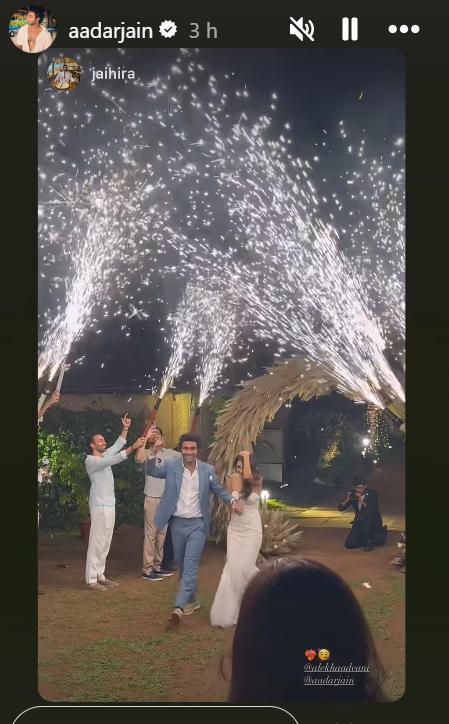 Aadar Jain and Alekha Advani are now married. Aadar and Alekha tied the knot in a beautiful beachside Christian wedding in Goa. The couple had a close-knit wedding ceremony with close friends and family members present to bless the newlyweds. The pictures circulating on Instagram feature Neetu Kapoor, Karisma Kapoor, Armaan Jain, Anissa Malhotra Jain, Nitasha Nanda, and other members of the Kapoor clan present at the ceremony. While Kareena Kapoor, Alia Bhatt, Ranbir Kapoor, and Riddhima Kapoor were missing from the ceremony pictures, Riddhima mentioned she was having major "FOMO."