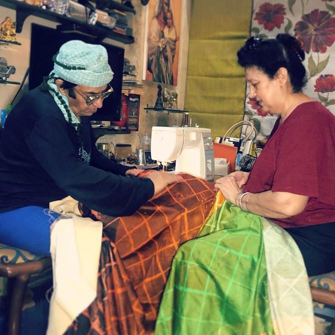 In picture: Ranjeet with his wife Aloka Bedi. He wrote in the caption: Ayeeee... lockdown ka faayda! Zindagi bhar filmon me kapde phaade aur ab biwi se kapdon ki silayee seekh raha hu
