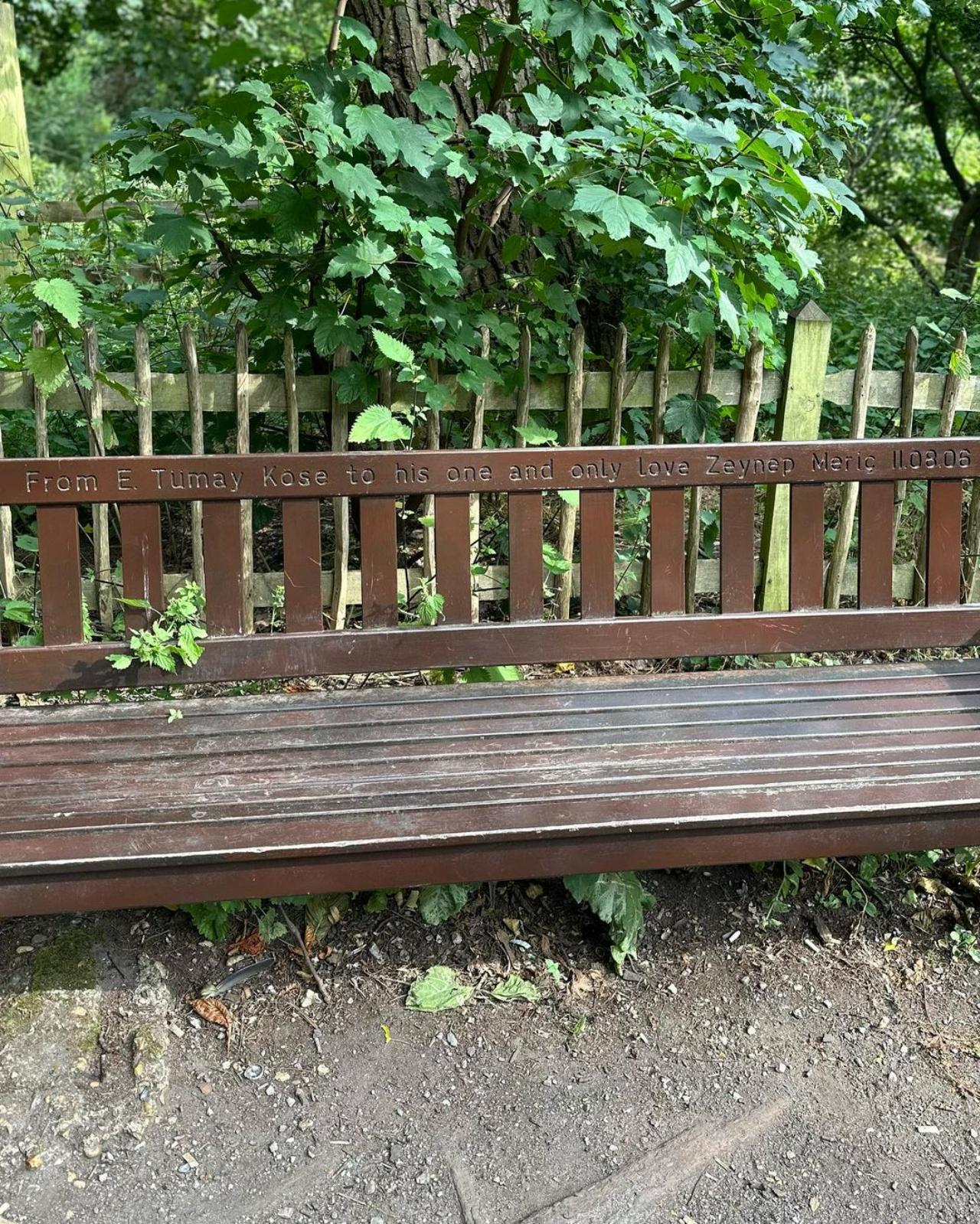 "From E. Tumay to his one and only love Zeynep Meric." Who needs poems and statues when you can get a beautiful bench all to yourself and your partner? Rhea captioned the post, "“If you look for it, I've got a sneaky feeling you'll find that love actually….is all around.”