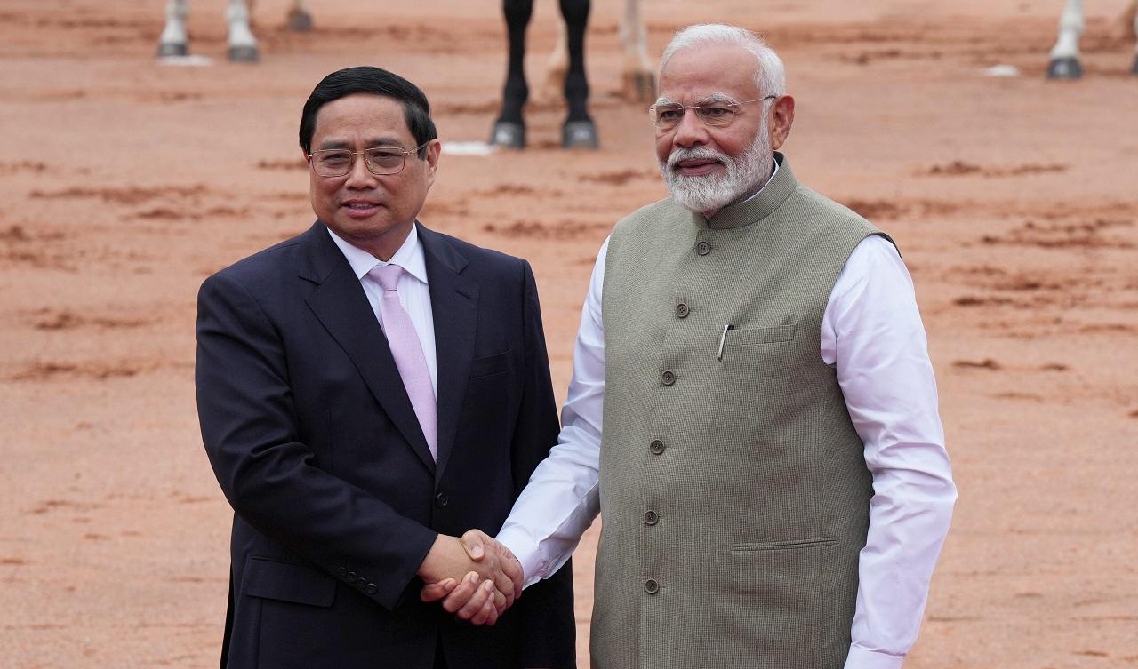 "PM @narendramodi extended a warm welcome to PM Pham Minh Chinh of Vietnam at Hyderabad House," External Affairs ministry spokesperson Randhir Jaiswal said on 'X'